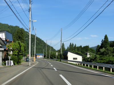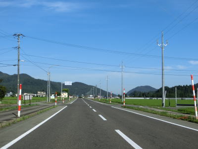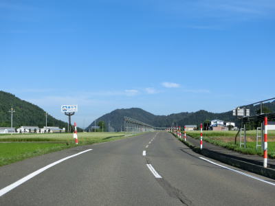 | 成瀬川の左岸を快走していると田子内方面に向かう村道との交差点を通過する。田子内は東成瀬村の役場がある集落であり、その北を通るバイパスは平坦かつ直線的で非常に走りやすい。 | ||