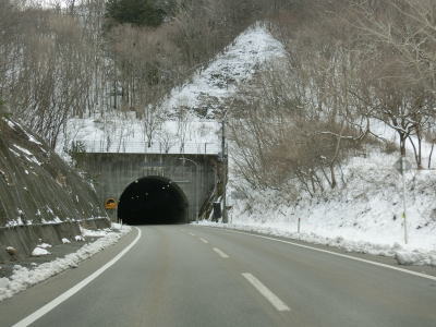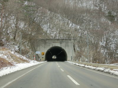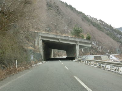 | 二升石集落を通り過ぎた後に二升石1号ロックシェッドと二升石2号ロックシェッドを相次いでくぐる。どちらも短いロックシェッドで内部のセンターライン付きの2車線道路で走りやすい。 | ||