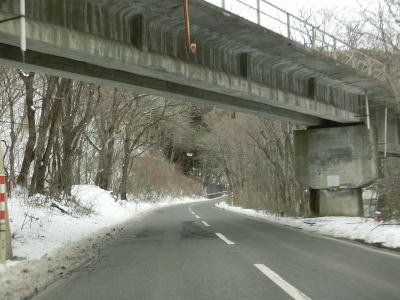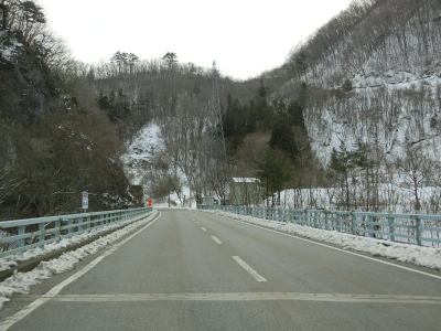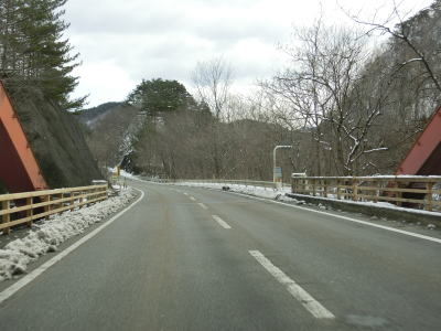 | 名目入交差点からはR455の単独区間となるが、道路状況に変化はなく走りやすい2車線道路が続く。小本川に沿って右カーブを曲がった先と左カーブの先でJR岩泉線の橋梁をくぐる。JR岩泉線は2014年3月31日に全線が廃止されている。時期からして東日本大震災に起因するのかと思ってしまうが、2010年7月31日に発生した土砂崩れ以来運休しており、それが4年後に正式に廃止されたという話である。 | ||