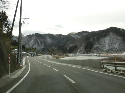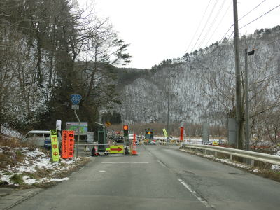 | 岩手r44交差点を通過した直後に三田市橋を渡って小本川の右岸に移るが、すぐに袰野大橋で左岸に戻る。袰野集落と赤鹿集落の間で法面工事に伴って片側交互通行規制が敷かれていた。川沿いの快走路を走っていると日向集落を通り抜けるが、護岸の改修(復旧?)工事が行われたようである。 | ||