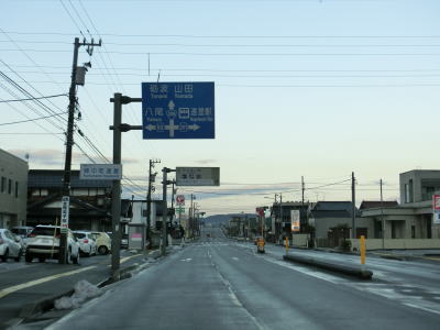 | 花園町交差点から約500mで富山r17との山王町交差点を通過する。JR城端線の砺波駅の東側の出入口の交差点だが、r17は停車場線ではなく駅と反対の東に向かっている。さらに少し走ると富山r16三島町交差点を通過する。 | ||