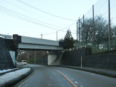 | 古里橋以西は商業施設よりも田畑が目立つようになり長閑な風景に変わる。市道との下邑口交差点を通過するが、そのルートからしてこの市道は旧道の可能性がある。富山r59との羽根交差点で左側車線が左折専用車線となり、交差点から先は対面2車線道路になる。上り勾配の左カーブを曲がって進行方角を西から南西に変える。 | ||
