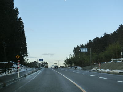| 名もなき峠付近で登坂車線が終わるが、入れ替わりに東向き車線の登坂車線が現れる。西向き車線の登坂車線の延長は約5.1kmとかなりの距離である。上り勾配区間と同じ6%の勾配を下りながら緩やかなカーブをいくつも曲がる。砺波市に入ってからも東向き車線の登坂車線は続いている。 | ||