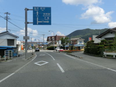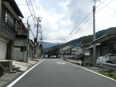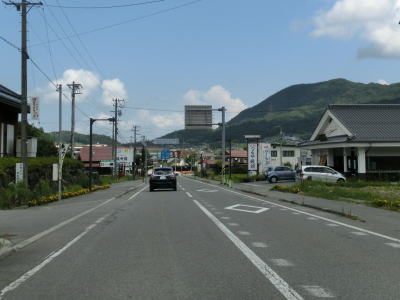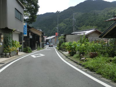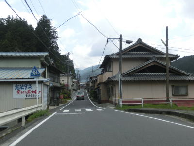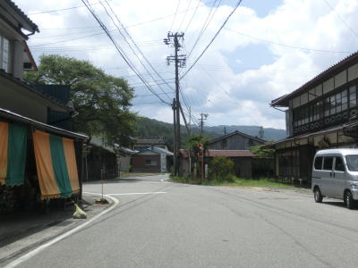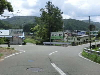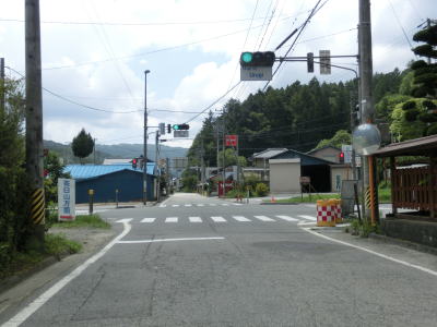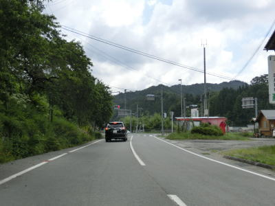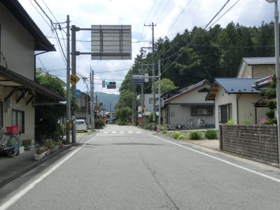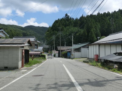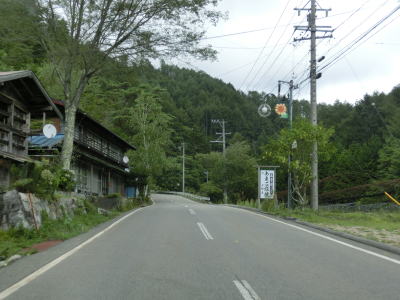 | ごく緩やかな上り勾配の2車線道路を走っていると平谷村の中心部を構成する集落に入る。飯田広域消防署平谷分署の前を通過した先でR153平谷交差点を通過する。周辺の建物の数は多くないが、北西のR153沿いに村役場やさらに北西に道の駅「信州平谷」があり、この平谷交差点の周辺が平谷村の中心部である。 | ||