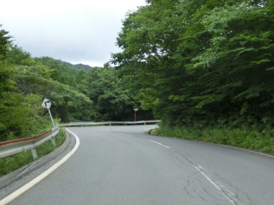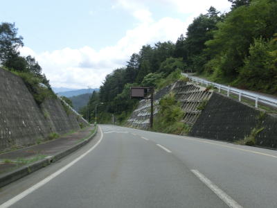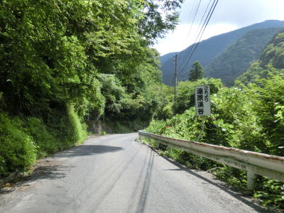| 平谷村側で最後の集落の十郎太集落を通り過ぎると勾配もカーブも急になるが、道幅はセンターライン付きの2車線が維持されている。峠の手前の案内標識には豊橋まで103kmとなっているが、地理的な位置を考えるとわざわざここを通って豊橋に向かうドライバーは少ないと思われる。 | ||