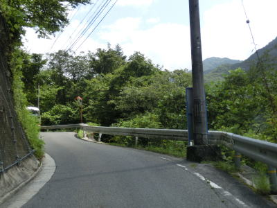 | 急カーブ・急勾配の2車線道路を下っていると路面のタイヤ痕が確認できる。ラバーポールが設置されていないカーブ部分という事から走り屋によるものと思われる。都市部からかなり離れた山間部だが、こんな所にまで出没するのか…。ヘアピンカーブ地帯を抜けた所で売木村で最初の集落の立又集落を通過する。それ以降も下り勾配が続いているが、勾配は走るにつれて行く分か緩やかになっていく。 | ||