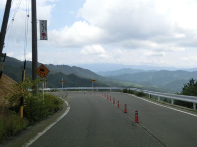 | 328.平谷峠を越えて売木村に入る | 329.売木村中心部を見渡せる | 330.カーブにはラバーポールあり |