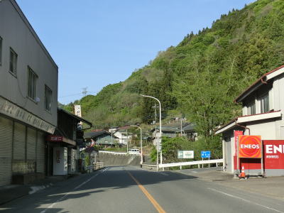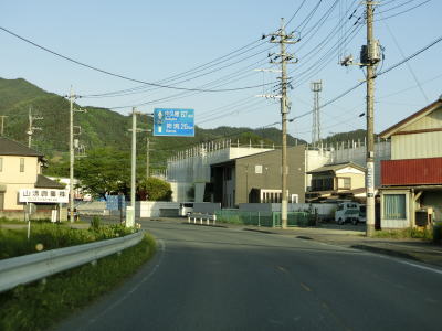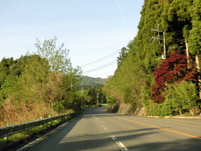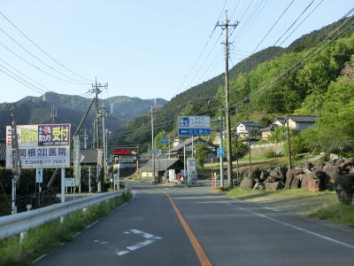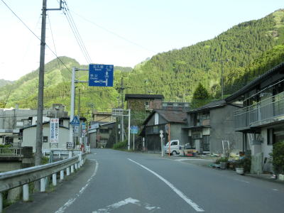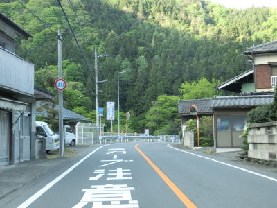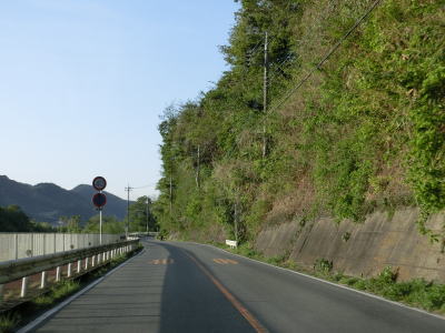 | 雨量通行規制区間に入ったとは言っても道路状況に特別な変化がある訳ではなく、歩道のない2車線道路が続いている。柴原集落を過ぎるとしばらく集落が途切れ、今里集落で登坂車線が現れる。“登坂”となっているものの勾配は非常に緩やかで一部下っている箇所もある。 | ||