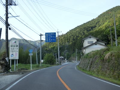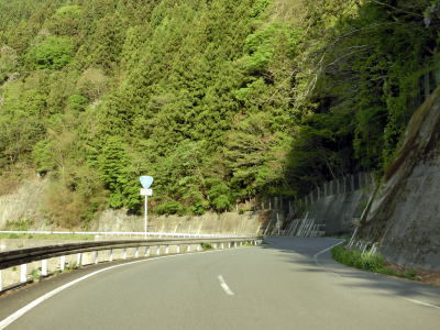 | 右カーブの直後に保美濃山トンネルをくぐり、急なものを含めてカーブが連続している2車線道路を走る。下久保ダムによる神流湖の北岸を走っているが、湖面は全く見えず湖畔を走っている印象は薄い。旧道が接続している右カーブの直後に神坂トンネルをくぐる。トンネルを出た直後に旧道と交差するが、交差点の傍に公衆トイレが設置されている。 | ||