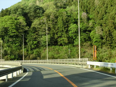 | 相原集落の中でセンターラインがなくなるが2.0車線幅は確保されている。センターラインが復活した直後に紅葉橋を渡り、坂丸林道との交差点を通過してから高八木トンネルをくぐる。トンネルの東には高八木橋が、西には伝田郷橋が架かっている。 | ||